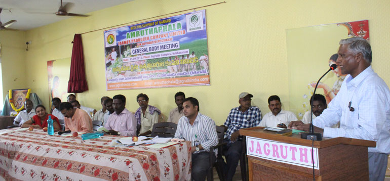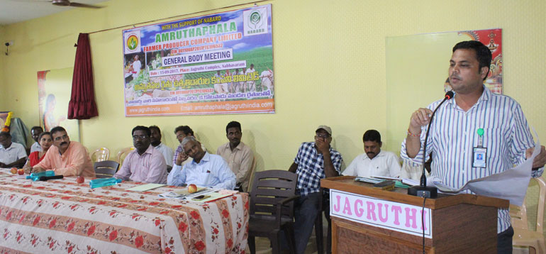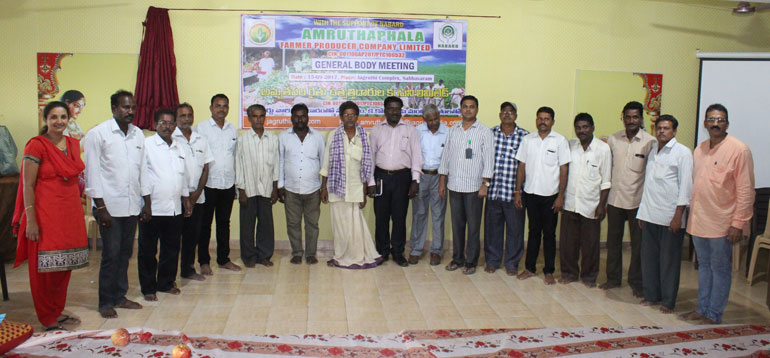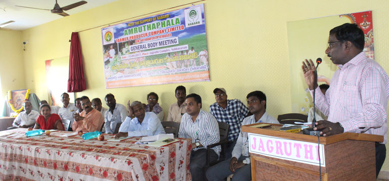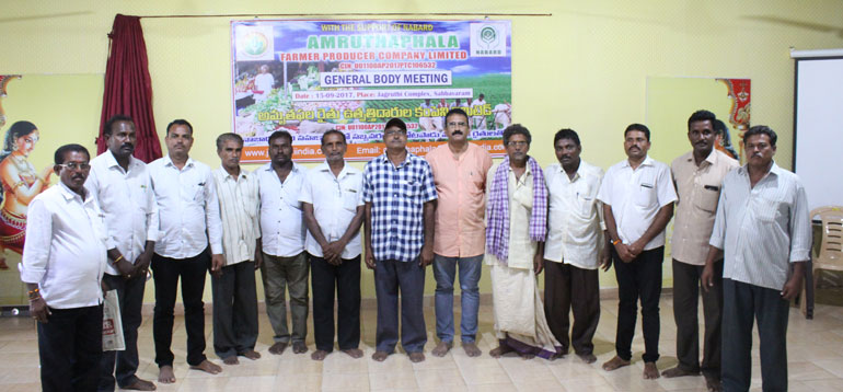 Jagruthi promoted farmer producer company with the horticulture farmers of Sabbavaram and K.Kotapadu of Visakhapatnam District, NABARD Supported this activity and it was registered under companies Act as Amruthaphala farmer producer company limited.
