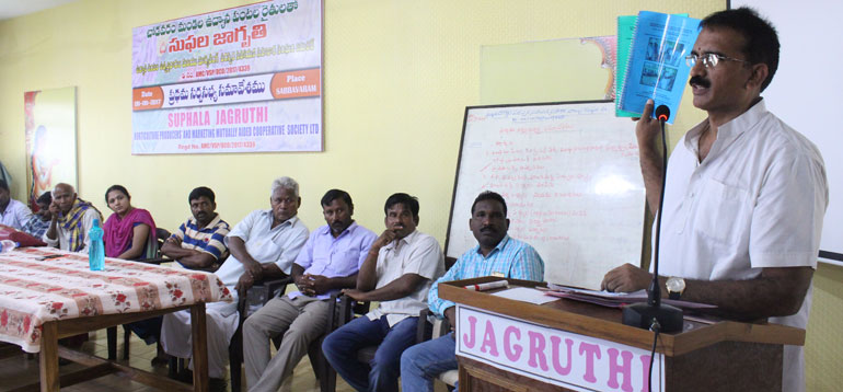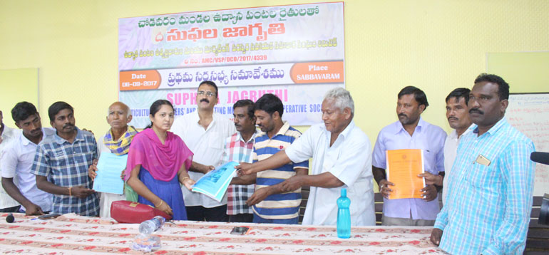 Jagruthi formed a Mutually Aided Co-operative Society for the benefit of the horticulture farmers Chodavaram mandal of Visakhapatnam District. Around 600 farmers registered in the society named as Suphala Jagruthi Horticulture Producers and Marketing Mutually Aided Co-operative Society Limited,. On 06-09-2017.